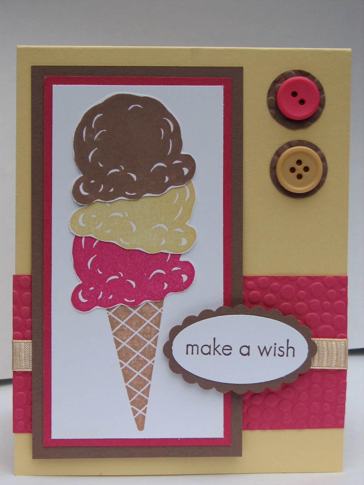 This is a fun, long-time retired SU stamp set which you can probably still find on ebay. I cut out all the ice-cream scoops and placed them on top of each other, you know, just to make them look more... delicious.